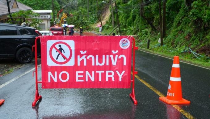PHUKET : 50 Pi Rd (Ha Sip Pi Rd), à Patong, reste fermée à la circulation ce jeudi pendant des inspections de sécurité et des opérations de nettoyage sur le site du glissement de terrain provoqué par les fortes précipitations de la veille.