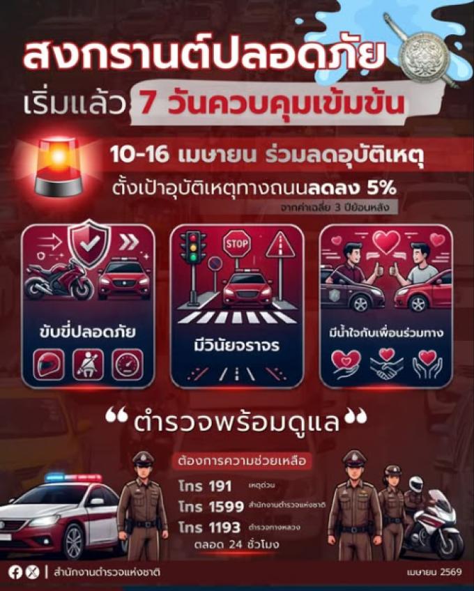La campagne, organisée tous les ans pendant la période de Songkran, a pour objectif de réduire le pic des accidents sur les routes et en mer habituellement constaté en Thaïlande pendant cette grande saison de voyages.