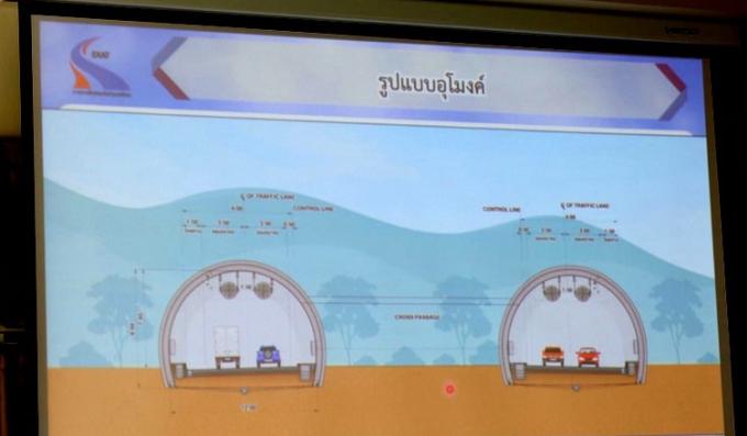 Toutefois, montré sur les photos présentées pendant la réunion mais non mentionné dans le rapport, l’intitulé du projet signale que le tunnel de Patong sera construit quoi qu’il arrive.