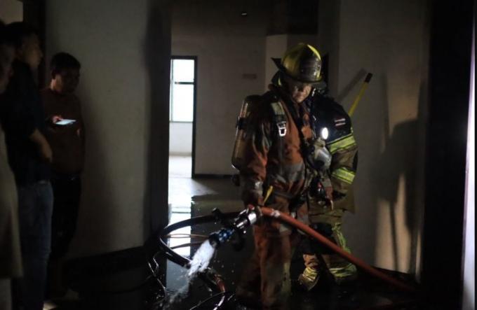 Sur place, les officiers ont rejoint les pompiers et le gérant du bâtiment, Thamnoon Dibookakham, 64 ans, qui a indiqué que l’incendie s’était déclaré dans la chambre 215 au deuxième étage. La chambre était occupée par M. Trithep Pukmadan, 40 ans.