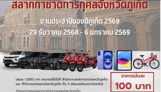 Organisé dans le cadre de la ‘Phuket’s Best Products and New Year Fair 2026’, l’évènement a pour but de lever des fonds pour venir en aide aux personnes dans le besoin dans la province. Les billets sont disponibles auprès des bureaux du gouvernement et de certains magasins privés.
