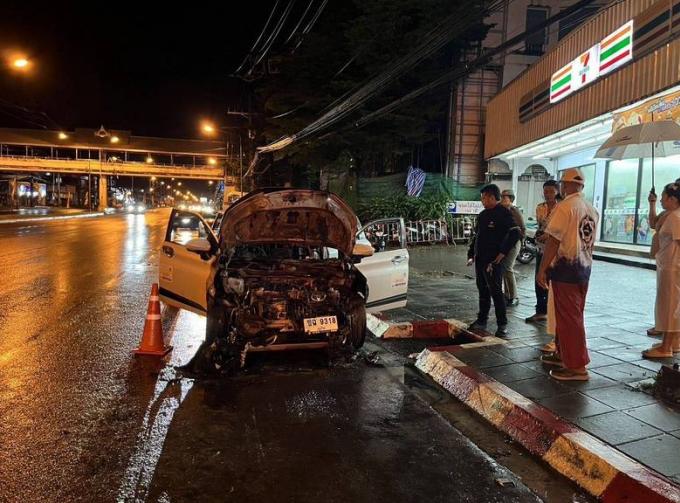 La Police de Phuket Town a été informé de l’incendie à 21h50. Sur place, les officiers ont trouvé une Toyota Veloz blanche immatriculée à Phuket endommagée par les flammes.