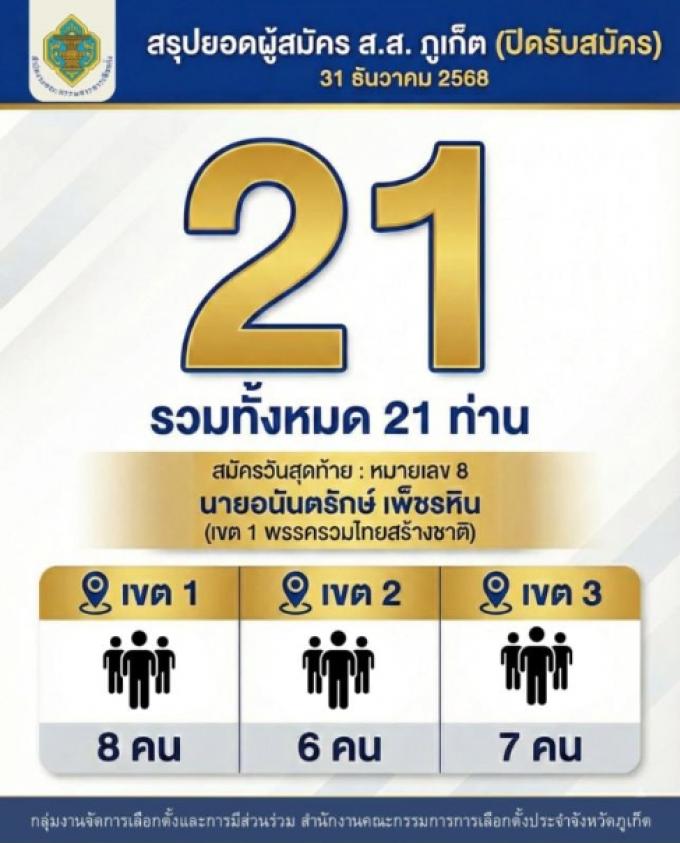 Cette dispute s’est dévoilée le dernier jour des inscriptions aux sièges des parlementaires de Phuket, qui se sont closes à 16h le 31 Décembre. Les derniers candidats se sont présentés dès 8h30, portant le nombre total de candidats dans les trois circonscriptions de Phuket, en comptant Anandrak, à 21.