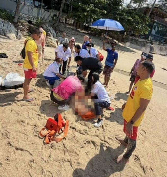 La Police de Patong a été informée à 12h25 par l’Hôpital de Patong. Sur place, les officiers ont trouvé la victime Sergey Lunkin, toujours couvert de sable, indiquant qu’il avait été amené directement depuis la plage.