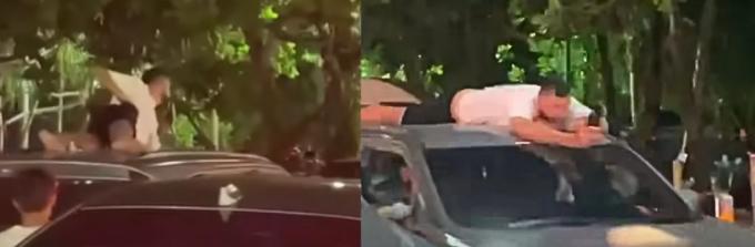 La vidéo de 24 secondes, partagée sur la page Facebook de PhuketTimes, montre l’individu allongé sur le toit d’un SUV qui roule lentement sur Thawewong Rd, à Kathu.