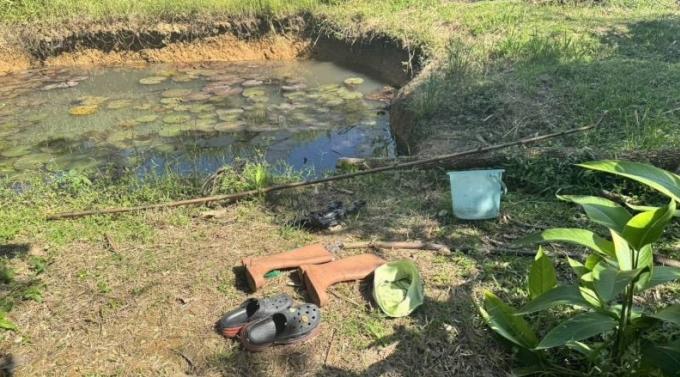 Suman Nongnuan, qui a découvert le corps, a indiqué aux officiers qu’il marchait dans le jardin vers 9h30 quand il a remarqué des affaires posées près de l’étang.