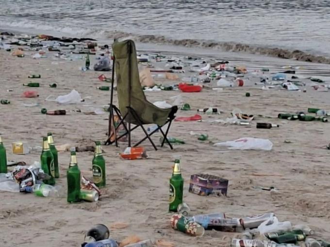 Les déchets consistaient en des bouteilles d’alcool. Les fêtards avaient éparpillé d’innombrables bouteilles brunes et vertes et des canettes de bière sur le sable.