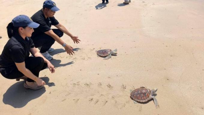 Les participants ont lâché des tortues en mer dans un geste symbolique destiné à renforcer les mesures de protection des ressources maritimes de l’Andaman et de sensibiliser à la protection des animaux marins rares.