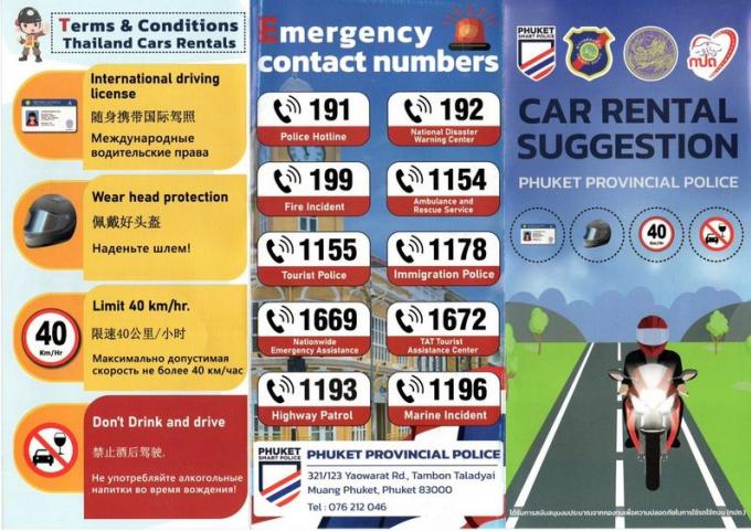 Dans les affaires concernant des véhicules de location et des défauts de permis, la police a enregistré 23,646 contrevenants, 2,745 thaïs et 20,901 étrangers. Les principaux contrevenants étrangers sont les russes (11,855), les chinois (1,841), les britanniques (1,491), les français (1,442), les indiens (1,134) et les malaisiens (825).