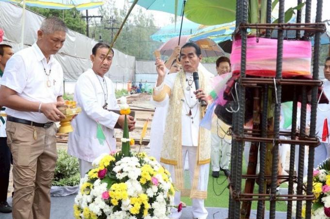 La cérémonie, organisée à 9h09 sur le site de construction sur Pracha Uthit Rd, était présidée par le gouverneur de Phuket Saransak Srikruanetra, accompagné de sa femme Mme Ruedeewan, d’officiels, de membres importants de la communauté, de donateurs et de représentants du secteur public et du secteur privé.