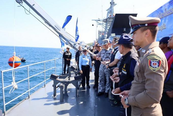 Le gouverneur Nirat et le vice-amiral Veerud ont mis à l’eau plusieurs bouées, un geste symbolique de soutien aux officiers et au personnel impliqué dans l’opération soulignant l’importance de la coopération entre les autorités civiles et la marine dans la protection des écosystèmes marins de Phuket.