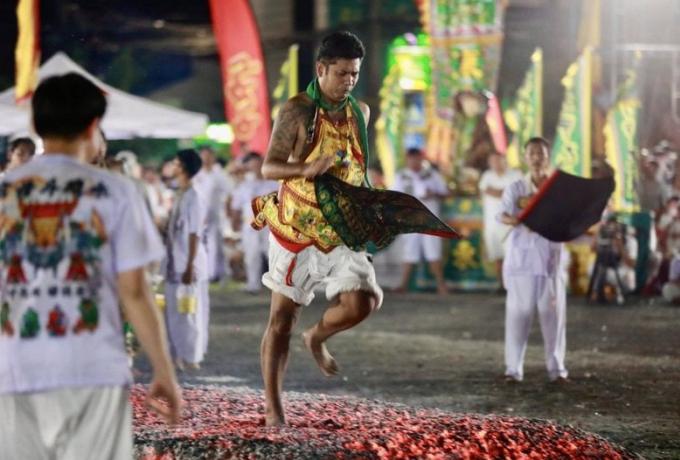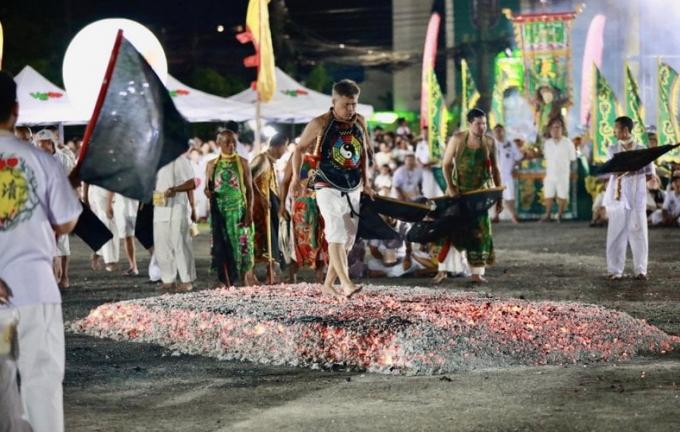 La cérémonie de marche sur le feu est l’un des évènements les plus sacrés du Festival Végétarien, et représente le pouvoir de la protection divine et le triomphe de la pureté sur la souffrance physique. Les participants, des médiums et des dévots, ont couru ou marché pieds nus sur des braises pour démontrer la pureté de leur corps, de leur discours et de leur esprit.