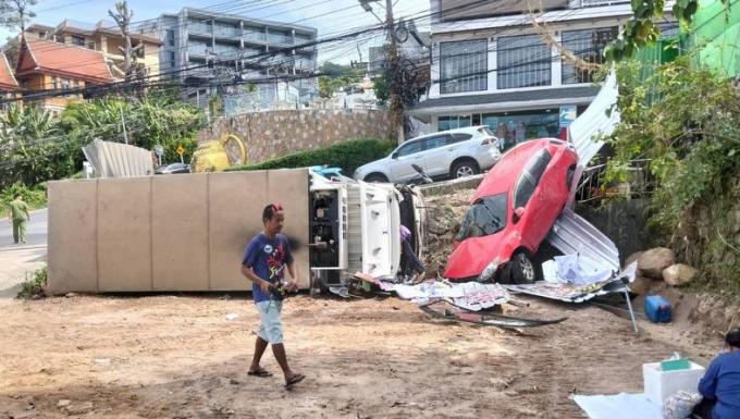 PHUKET : Un camion dont les freins ont lâché a dévalé une pente à Kata Noi et percuté un véhicule en stationnement sans faire de blessé.