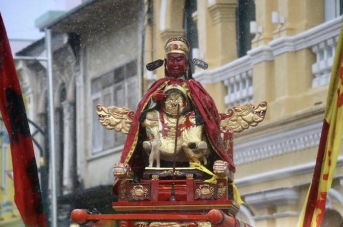 PHUKET : La dévotion a triomphé de la météo pendant que des milliers de dévots, de médiums et de visiteurs étaient présents dans les rues de Phuket Town pour assister aux processions Iw Keng des temples Tha Ruea et Jeng Ong, pour l’un des évènements les plus vénérés du Festival Végétarien de Phuket.