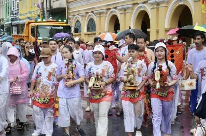 La foi rayonne malgré la pluie qui tombe sur le Festival Végétarien de Phuket