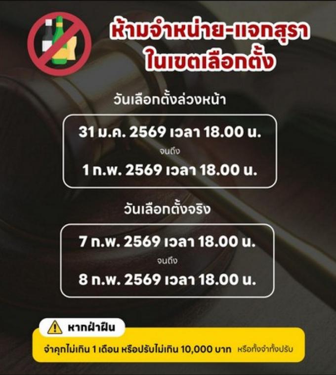 Dans la cadre de la loi électorale, une interdiction de l’alcool entrera en vigueur pendant 24 heures, de 18h le 31 Janvier à 18h le 1er Février, à l’occasion des votes par anticipation, a indiqué la responsable de la Commission Électorale de Thaïlande à Phuket (ECT Phuket) Orapin Achivasuk.