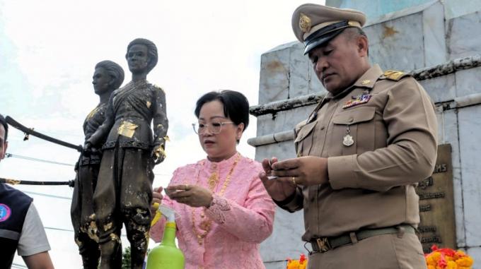 Accompagné de sa femme, Ruedeewan Srikruanetra, qui prend maintenant le poste de présidente de la Croix Rouge de Phuket, le gouverneur a commencé sa journée par un hommage au Temple du Pilier de Phuket, puis au Heroines Monuments à Thalang, et à Wat Chaiyathararam (Wat Chalong), où il a honoré Luang Por Chaem.