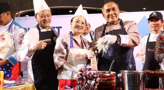 La conférence de presse a été l’occasion de présenter des performances de l’Association de Développement des Technques et des Compétences dans le Sud et de l’Association Agroalimentaire de l’Andaman, avec une démonstration de préparation de ‘som tam’ par le gouverneur et sa femme, ainsi que la préparation de rouleaux de printemps végétariens par Anchalee Vanich Thepbutr, président de l’Association des Arts de Phuket.