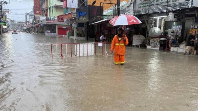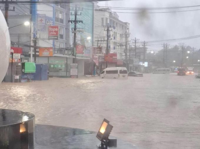Les officiers ont constaté des inondations sur plusieurs grandes intersections, parmi lesquelles :l’intersection de l’hôpital, où les gros véhicules pouvaient toujours passer; l’intersection de Patong Hill, où les petits véhicules ne pouvaient pas passer en raison de la profondeur de l’eau; devant le poste de police de Patong, où l’eau ne s’évacuait pas; près du terrain de séparation des eaux, qui était toujours inondé; et devant la caserne de pompiers, qui était toujours sous les eaux.