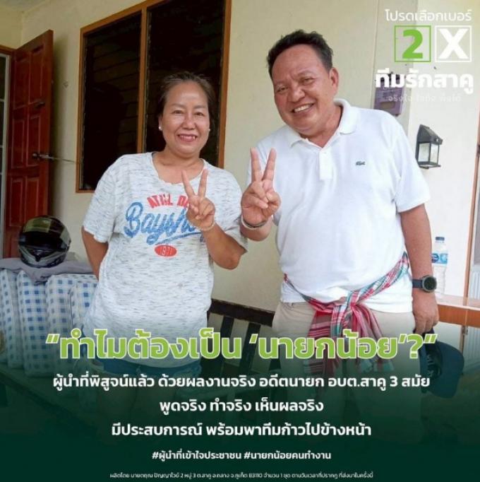 Deux candidats sont en lice pour le poste de chef de l’orBorTor de Sakhu : Ekaphon Phang-nga du parti Sakhu Power, avec le bulletin No.1, qui fait campagne avec le slogan ‘Le Pouvoir du Changement’, et promeut des réformes économiques, sociétales, éducatives et d’engagement de la jeunesse; et le maire Trin ‘Noi’ Panyawai du parti Love Sakhu, avec le bulletin No.2, qui fait campagne avec le slogan ‘Le Vrai Deal, Vainqueur Garanti’. Trin est candidat à sa réélection avec des projets comme les bateaux-taxis, le soutien des carrières et le développement durable.