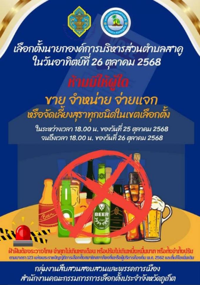 Dans le cadre des lois électorales, la vente et la distribution d’alcool à Sakhu sera interdite de 18h le 25 Octobre à 18h le 26 Octobre.