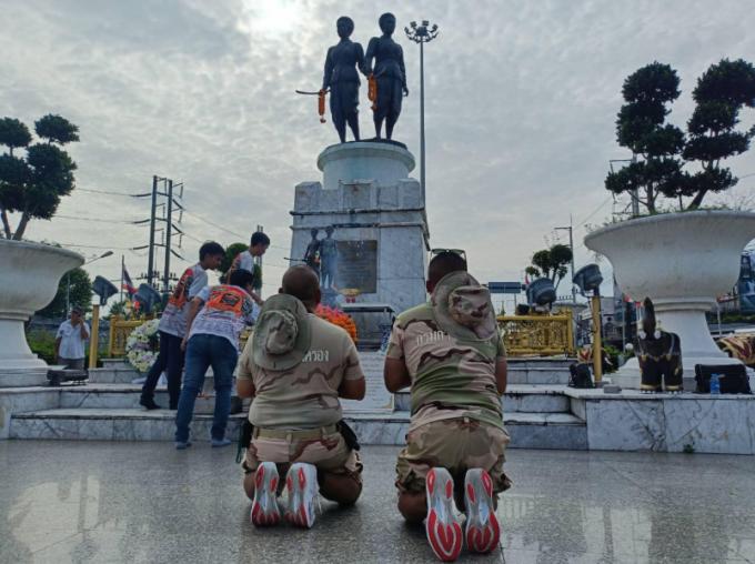 Puis ils se sont rendus devant le monument sacré de Thao Thepkasattri et Thao Srisunthon, les légendaires héroïnes de Phuket, pour demander leur protection et le succès de leur périple.
