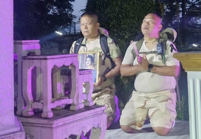 PHUKET : Dans une démonstration de loyauté et de révérence, deux membres de Volontaires du Corps Territorial de la Défense de Phuket ont entamé un pèlerinage solennelle à pieds entre Phuket et Bangkok pour rendre leurs derniers hommages à Sa Royale Majesté le Reine Sirikit, la Reine Mère de Thaïlande.