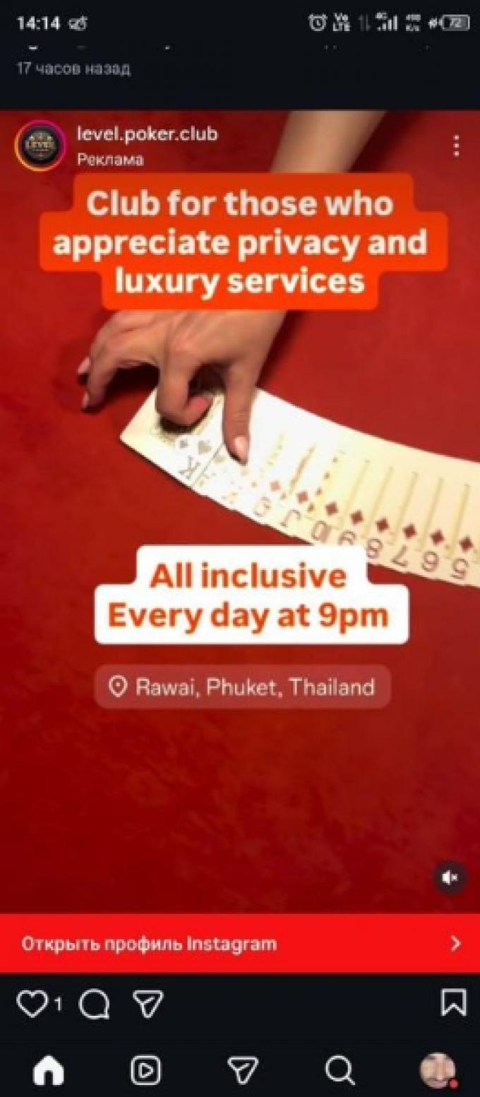 Selon le rapport de police, l’enquête a débuté quand les officiers ont découvert sur Instagram une publicité pour un cercle de poker baptisé ‘Poker Level’. Le message, écrit en russe, invitait les joueurs dans une villa privée de Rawai.