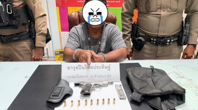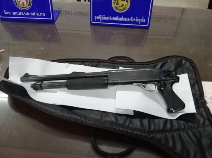 Le suspect a été inculpé pour possession d’arme à feu sans autorisation et consommation de drogue de Catégorie 1, et conduit au poste de police de Phuket Town.