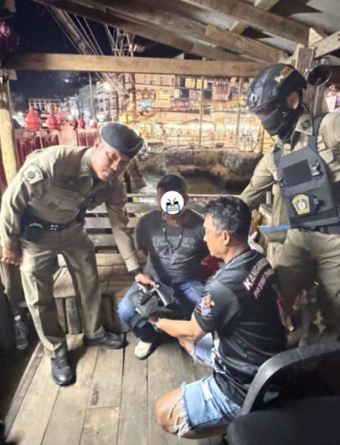 A la même heure, la Police de Patong a arrêté un autre suspect à l’arrêt de bus près du pont du Canal Pak Bang, sur Prachanukroh Rd.
