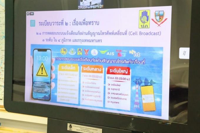 Cette session s’inscrivait dans le cadre des exercices nationaux pour assurer l’efficacité et la préparation du ‘système cellulaire de diffusion des alertes d’urgence’ de la Thaïlande, destiné à envoyer des alertes mobiles directement sur les smartphones, explique le rapport officiel de la réunion.