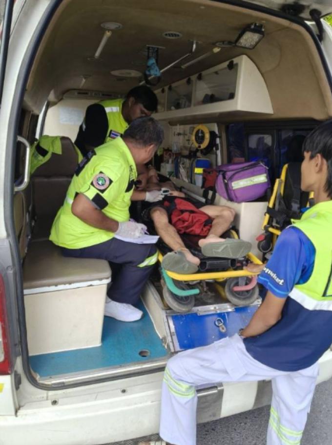 Le blessé, ‘Win Mo’, un birman, a été poignardé à l’abdomen. Lorsque les officiers sont arrivés, il était en train de recevoir les premiers soins par une équipe médicale de Mai Khao. Il a ensuite été transporté à l’Hôpital de Thalang. Son état était jugé grave.