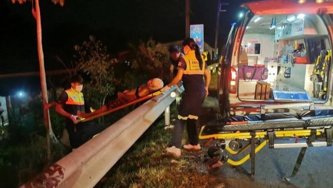 Pendant l’altercation, Mme Naree a attrapé un couteau et a entaillé son mari à la tête, le blessant grièvement. Les secouristes ont transporté M. Somsit à l’Hôpital de Thalang.