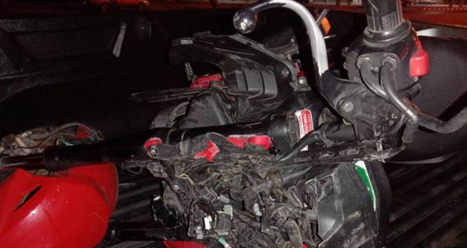 Sur place la police a retrouvé un scooter Honda MXS rouge derrière le camion.