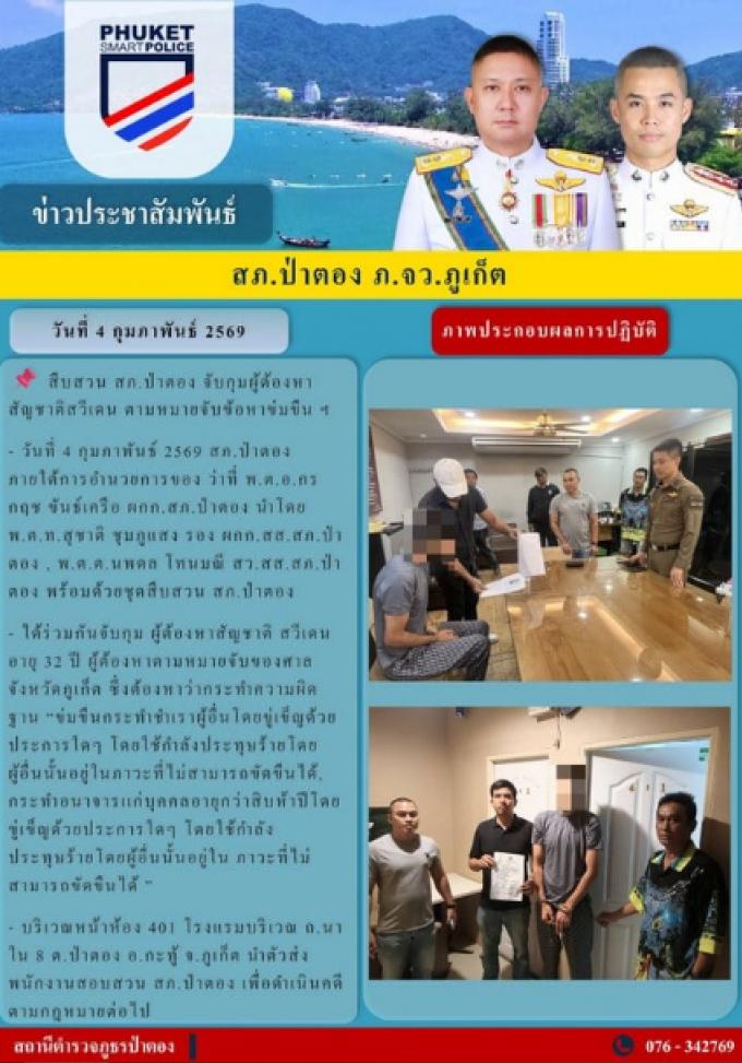 PHUKET : La Police de Patong a arrêté un suédois de 32 ans en lien avec le viol d’une touriste suédoise à Patong.