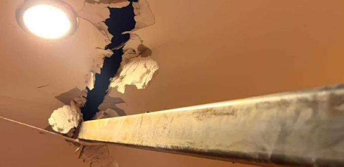 La propriétaire de la maison a partagé une vidéo de l’incident sur les réseaux sociaux, montrant une longue poutre en fer logée à travers son plafond. La vidéo montre également que la poutre en fer a défoncé une porte en bois à l'intérieur de la maison, et causé d’importants dégâts structurels.